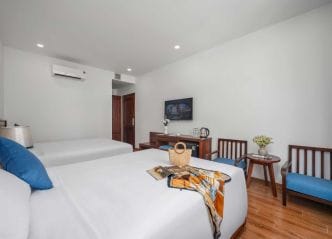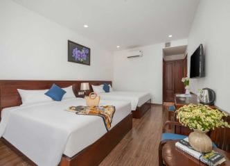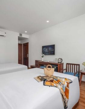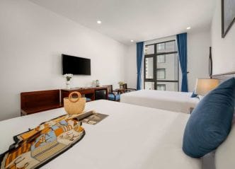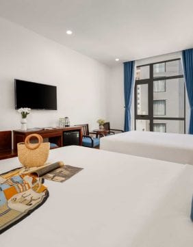The Deluxe Family Room is specially designed for families of 3–4 people seeking a warm, comfortable, and private retreat during their stay in Da Nang. The spacious room features two standard double beds, ideal for parents with children or close friends traveling together. Large windows welcome natural sunlight, creating an energizing and pleasant atmosphere. The room is furnished in a modern minimalist style—safe for children and welcoming for all family members. This room category truly brings a “home away from home” feeling—fully equipped, cozy, and perfect for connection and relaxation.
