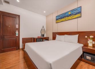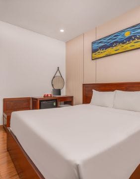 Standard Double Room là lựa chọn lý tưởng cho cặp đôi hoặc khách đi công tác đang tìm kiếm không gian nghỉ ngơi thoáng đãng, tiện nghi và gần biển. Phòng được thiết kế theo phong cách tối giản hiện đại, sử dụng tông màu trung tính tạo cảm giác nhẹ nhàng, thư giãn sau một ngày khám phá Đà Nẵng.